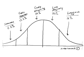 Business is full of graphs. A lot of them are bell curves. This one here is The Law of Diffusion of Technology. What it does is break down the total potential market for a new product (usually tech) according to the behavior and engagement of the customer. Its surprisingly accurate.